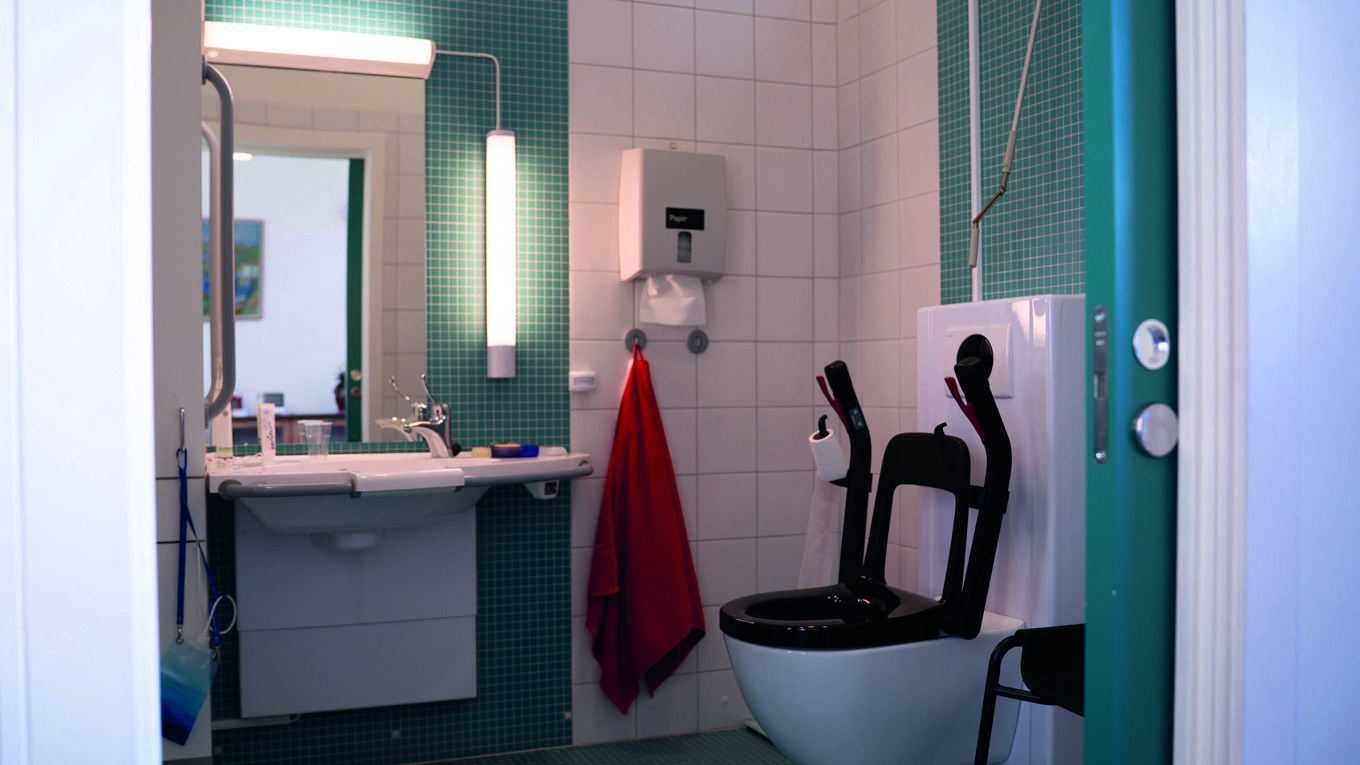 KONTRASTER: For at for at den eldre, og/eller demente skal kunne orientere seg på egenhånd er det viktig med kontraster. Forskjellig farge på vegg/fliser, toalett/toalettsete, vegg/håndklær er til god hjelp.
