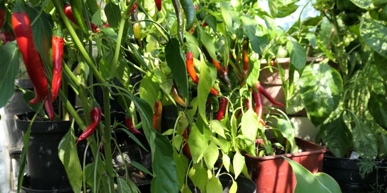 Men har du mulighet til å henge opp potter vil du finne både cherrytomater og chiliplanter som ampler.