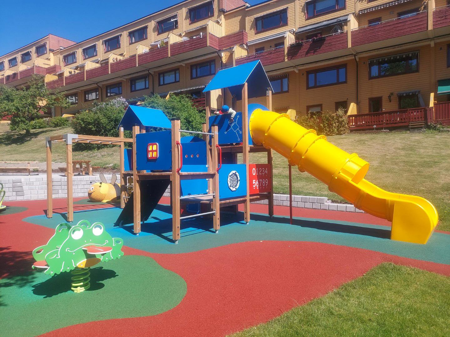 Når man benytter muligheten til å lage en lekeplass i sameiet- eller borettslaget, så må styret være påpasselige med at lekestativene er godt vedlikeholdt til enhver tid - for å unngå at noen skader seg.