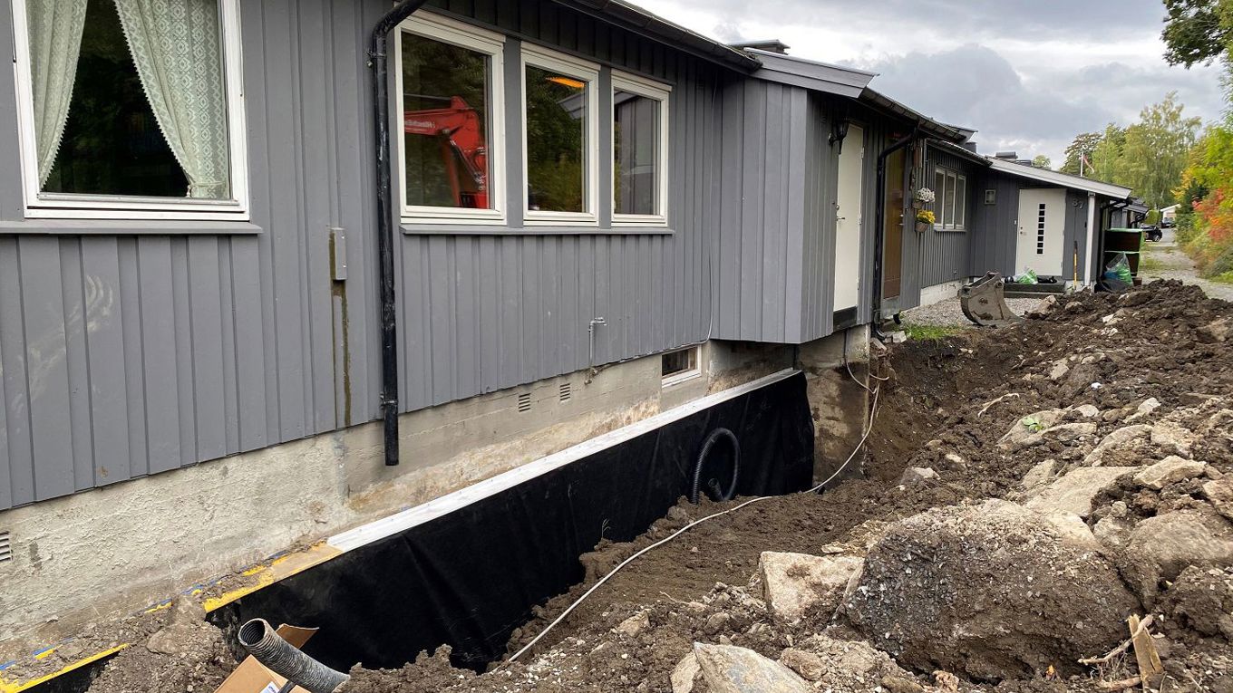 Dreneringen beskytter huset mot fuktproblemer og skader som følge av fukt i grunnen.