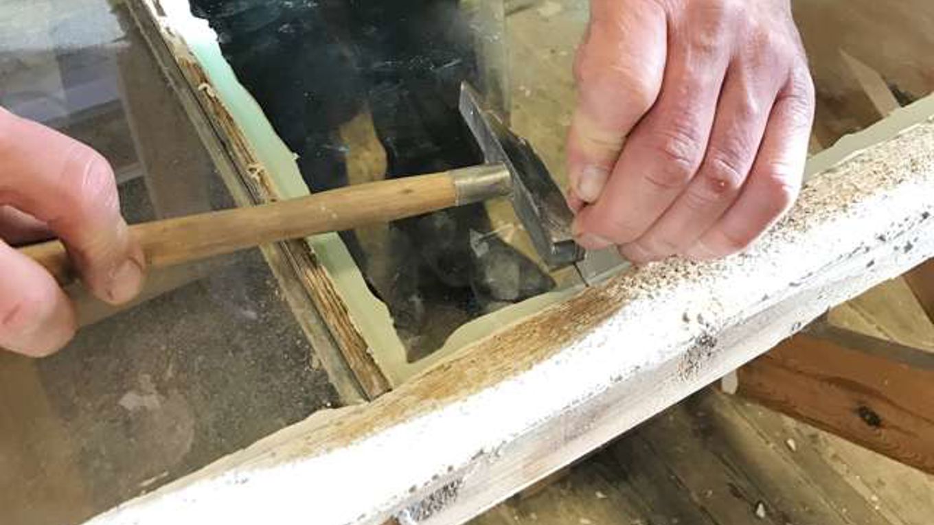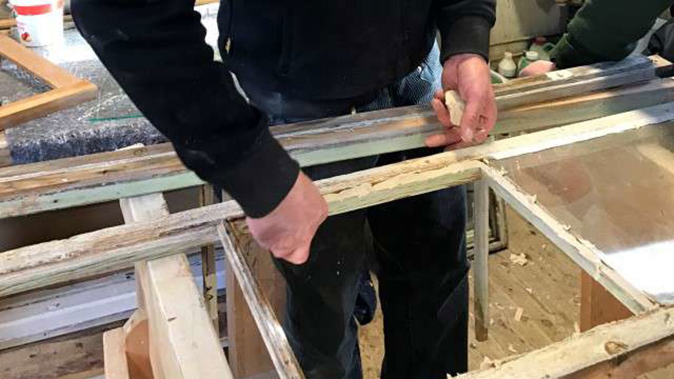 Gamle vinduer er svært ofte laget av kjerneved. Slitte, ødelagte og råteskadete materialer skiftes ut. Eventuelle ødelagte glassruter må erstattes med nye og hele.