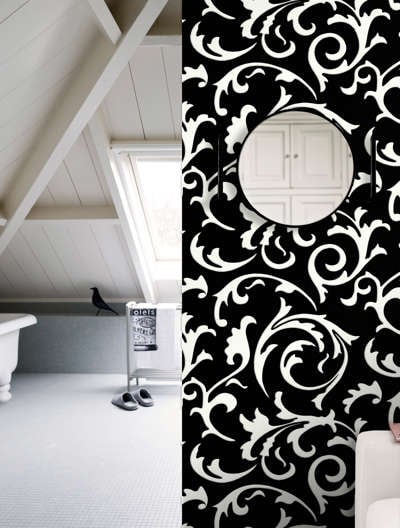 Blomstrende baderom med baderomstapet «Riviera» fra Borge. Foto: Borge