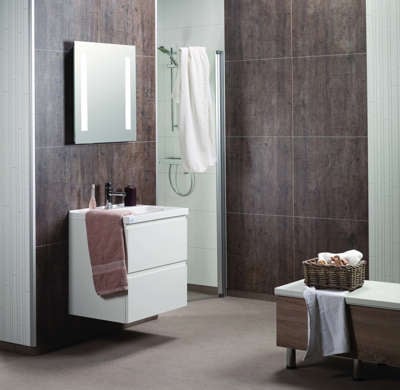 – Blant annet har vi «My Wood»-serien, med dekorflis. Vi har flere serier med tre, og det kommer snart en ny serie også. Det siste året har vi lagt merke til at dette er veldig populært, også på badet, sier Björklund i Höganäs.