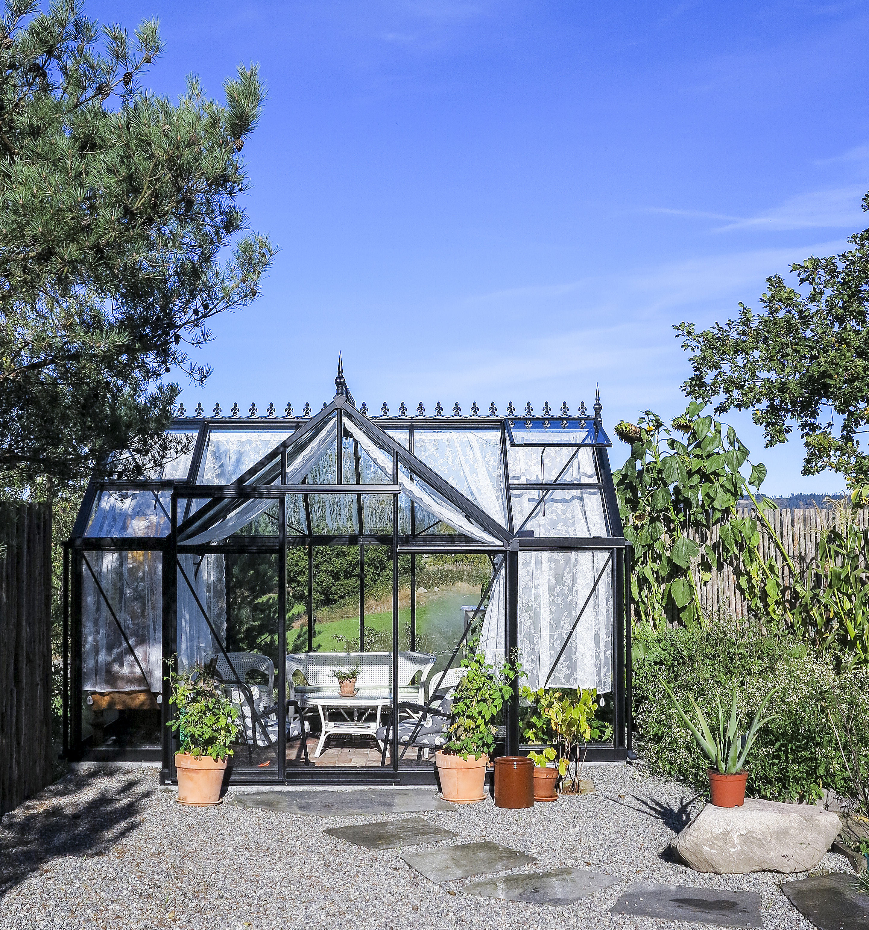 Selv kombinerer familien Frøyset drivhus og lysthus.