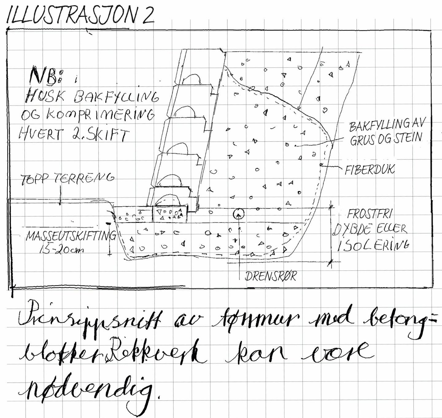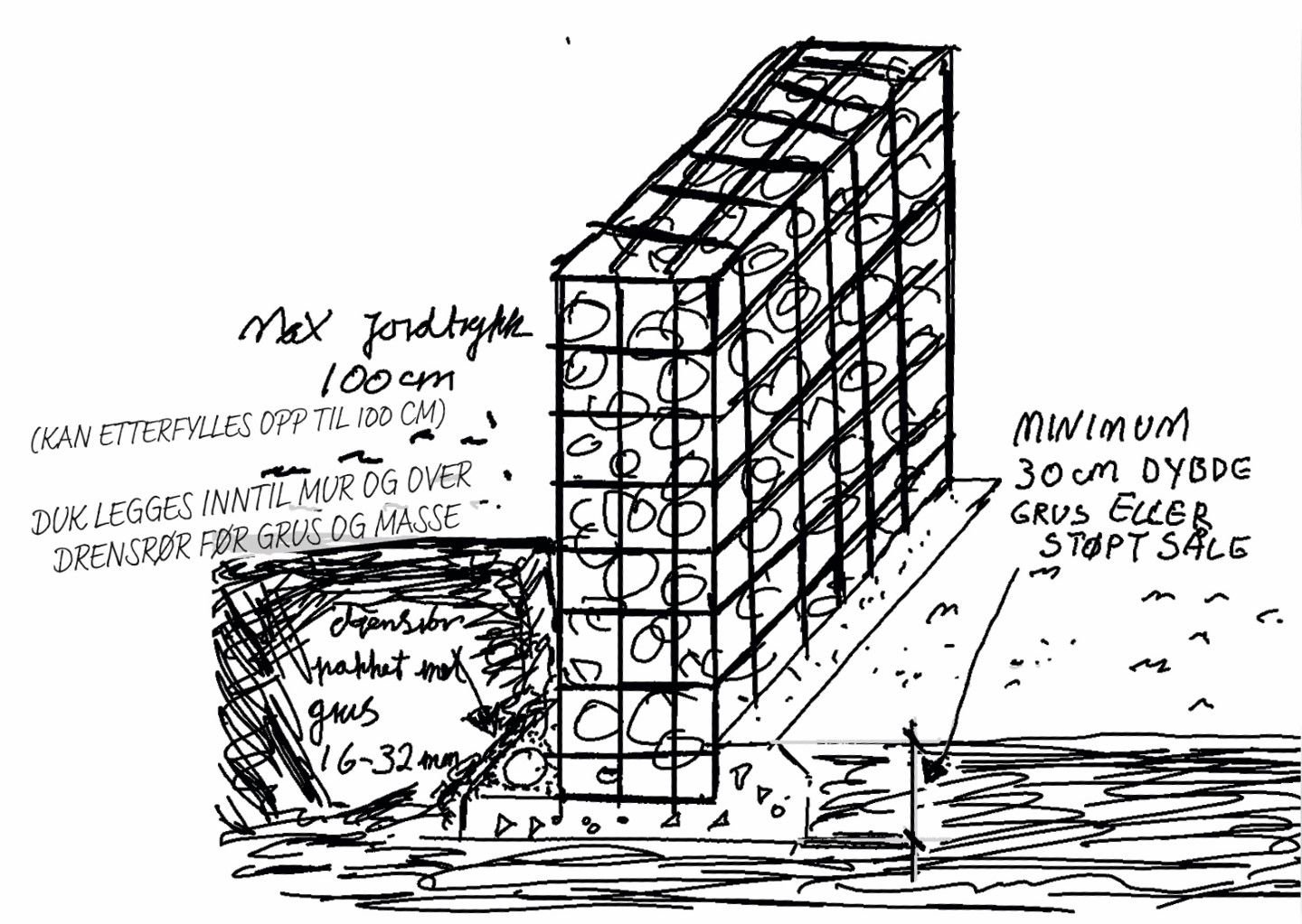 – Men husk at en mur med jordtrykk alltid skal ha et dren bak muren, påpeker han.