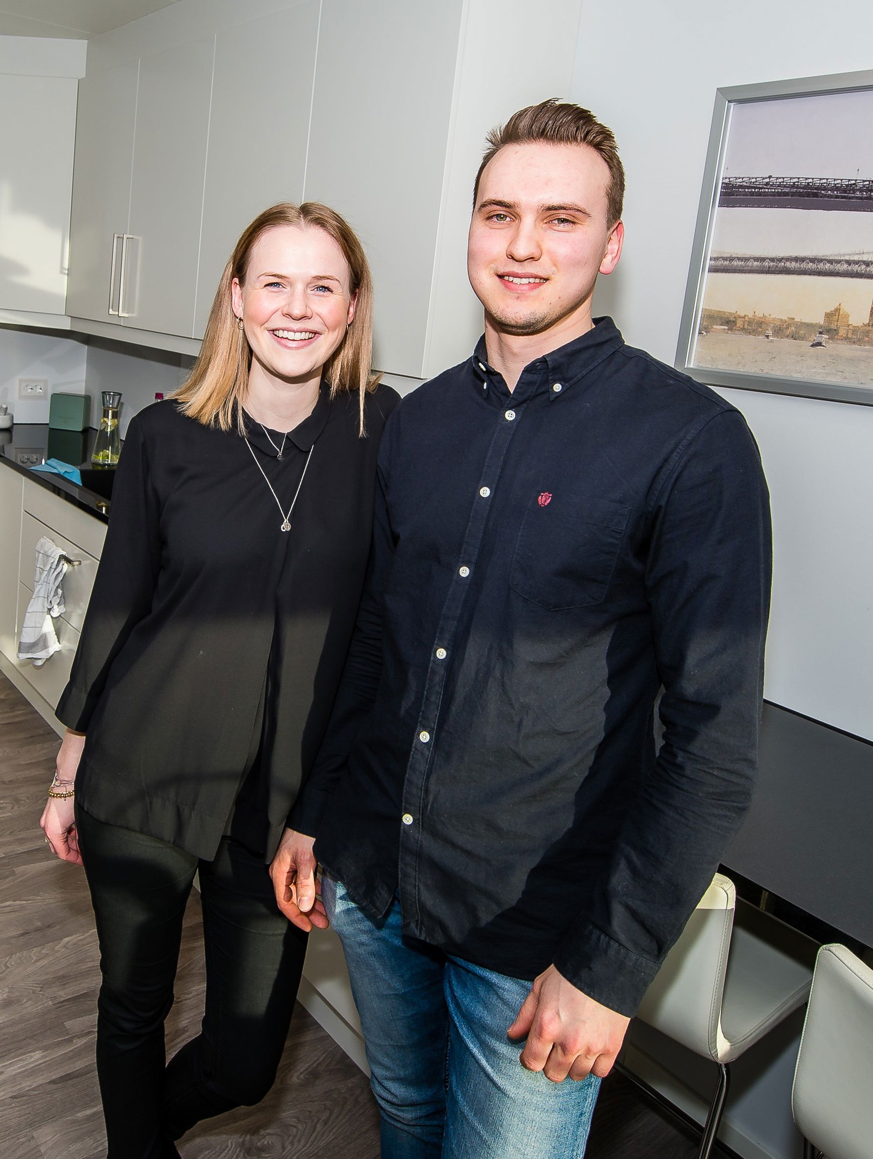Julia Nybø Huhndorf (24) og Ole Martin Giske Molvær (23) er lettet over at Opdahl loset dem ut av en vanskelig situasjon. Foto: Marius Simensen.