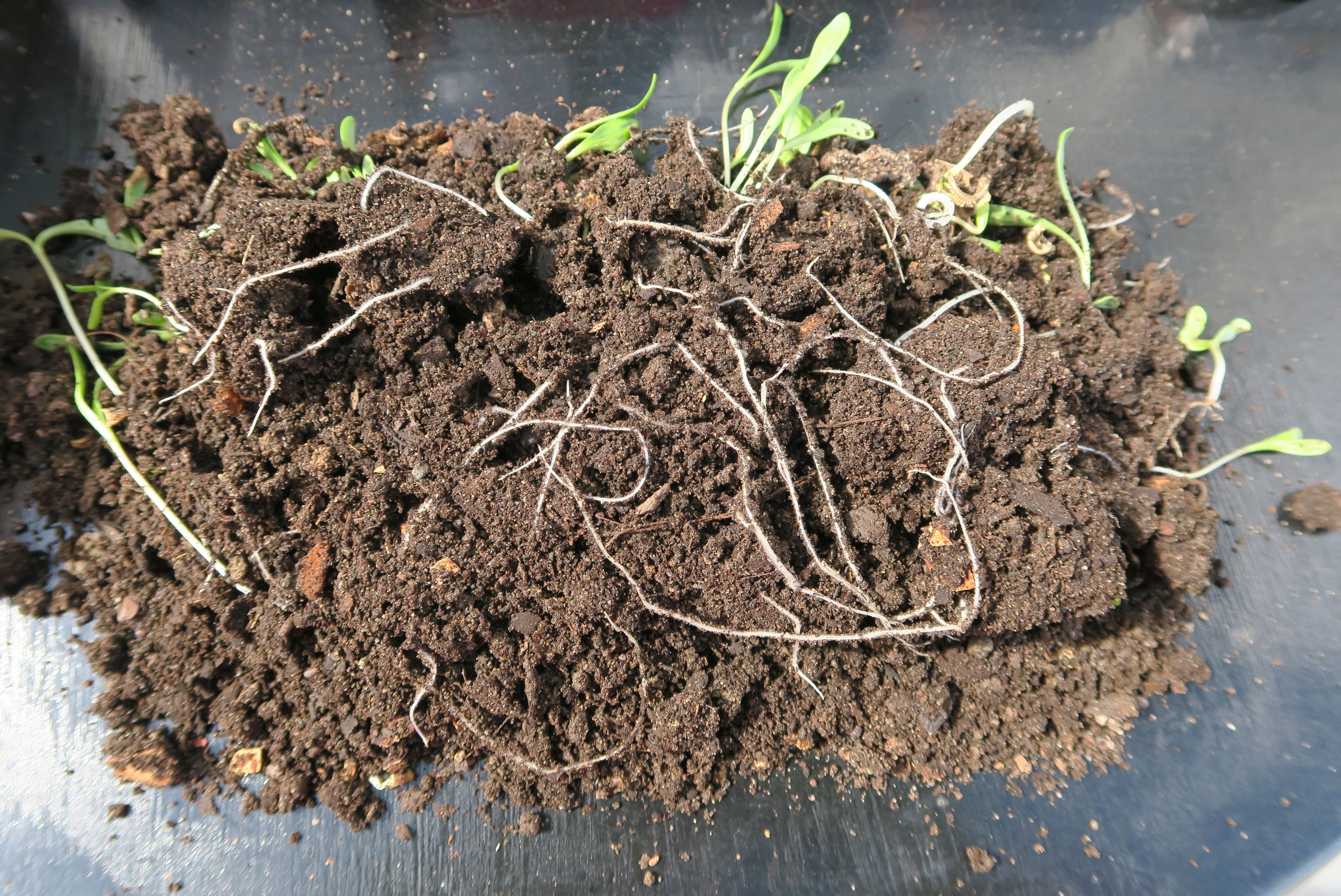 Du kan prikle spirene når de har utviklet de første bladene, og du klarer å holde dem mellom to fingre. Ta dem forsiktig fra hverandre slik at de skjøre røttene ikke blir skadet.