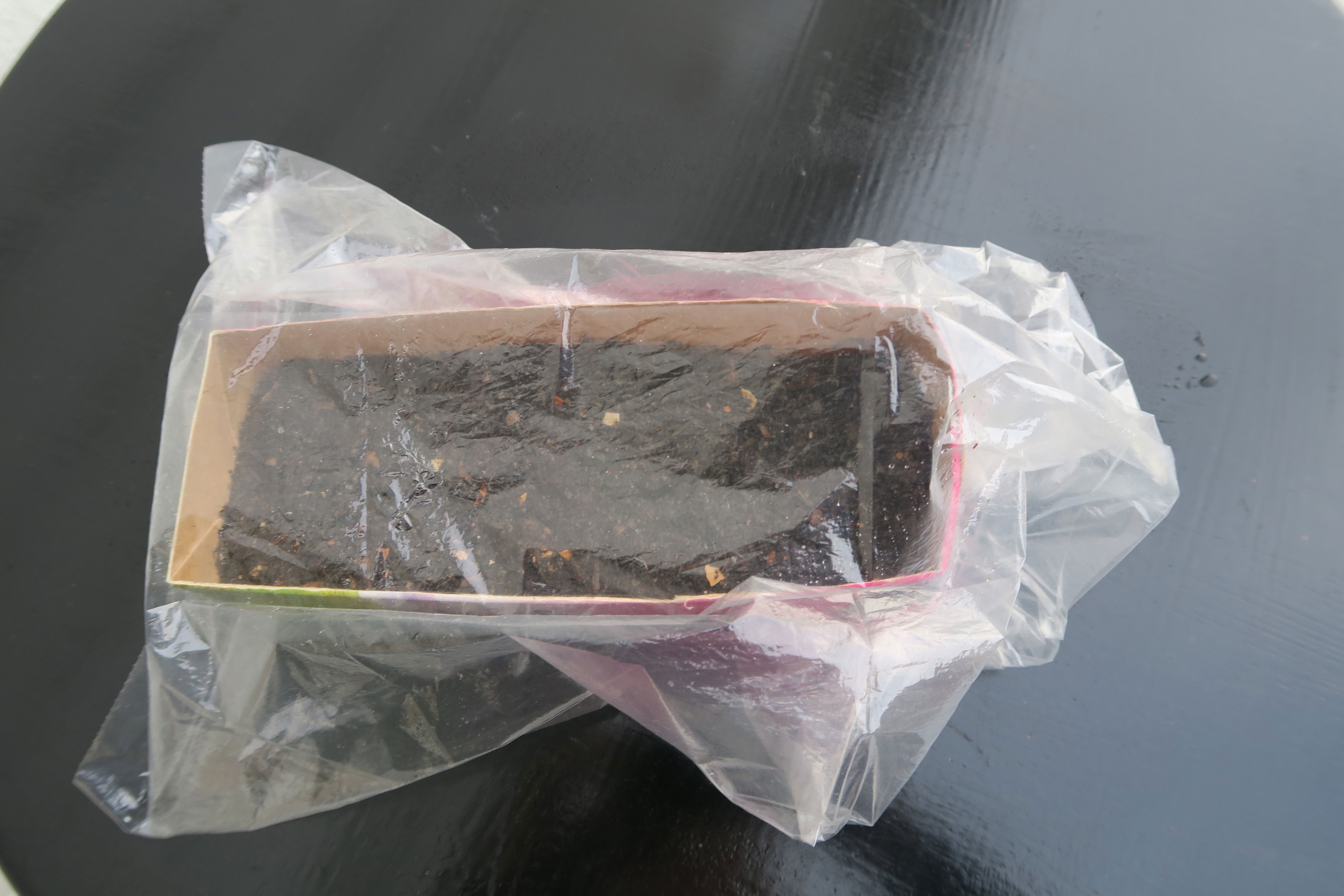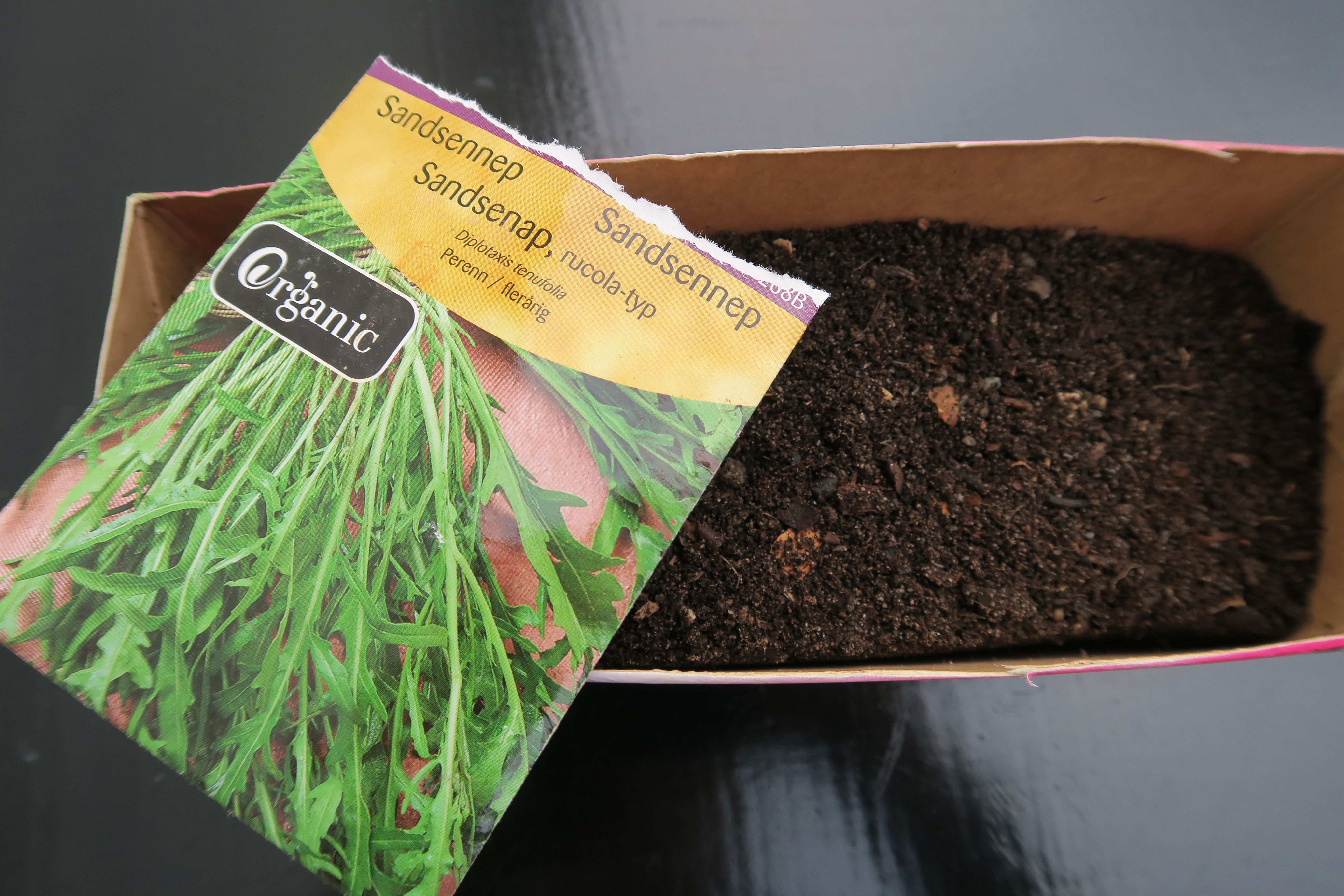 Trer du brødposer utenpå kartongene eller boksene, får du noe som ligner på et drivhus for frøene og senere spirene. Da er de godt beskyttet, og gror raskt.