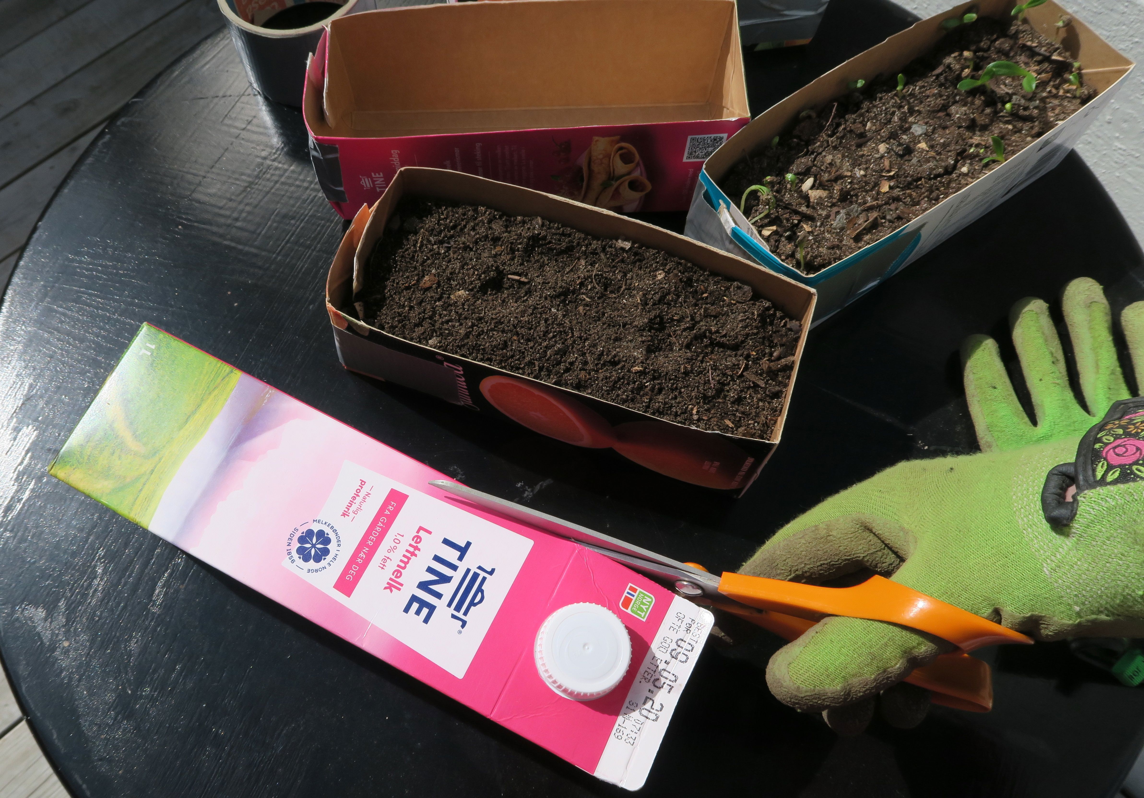 Nei, du må ikke kjøpe potter, du kan helt fint bruke det du har. Det enkleste er ofte det beste. For eksempel tomme melke- eller juicekartonger som du klipper til litt. Når du er ferdig med dem, kan du kaste dem i papiravfallet.