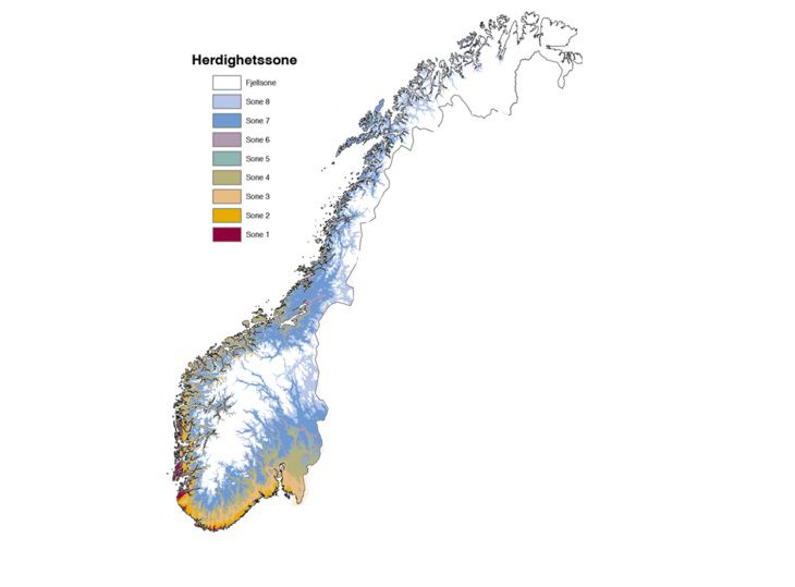 Opplysningskontoret for blomster og planter har dette kjekke vekstsonekartet som du kan bruke for å sjekke hvilken sone du bor i.