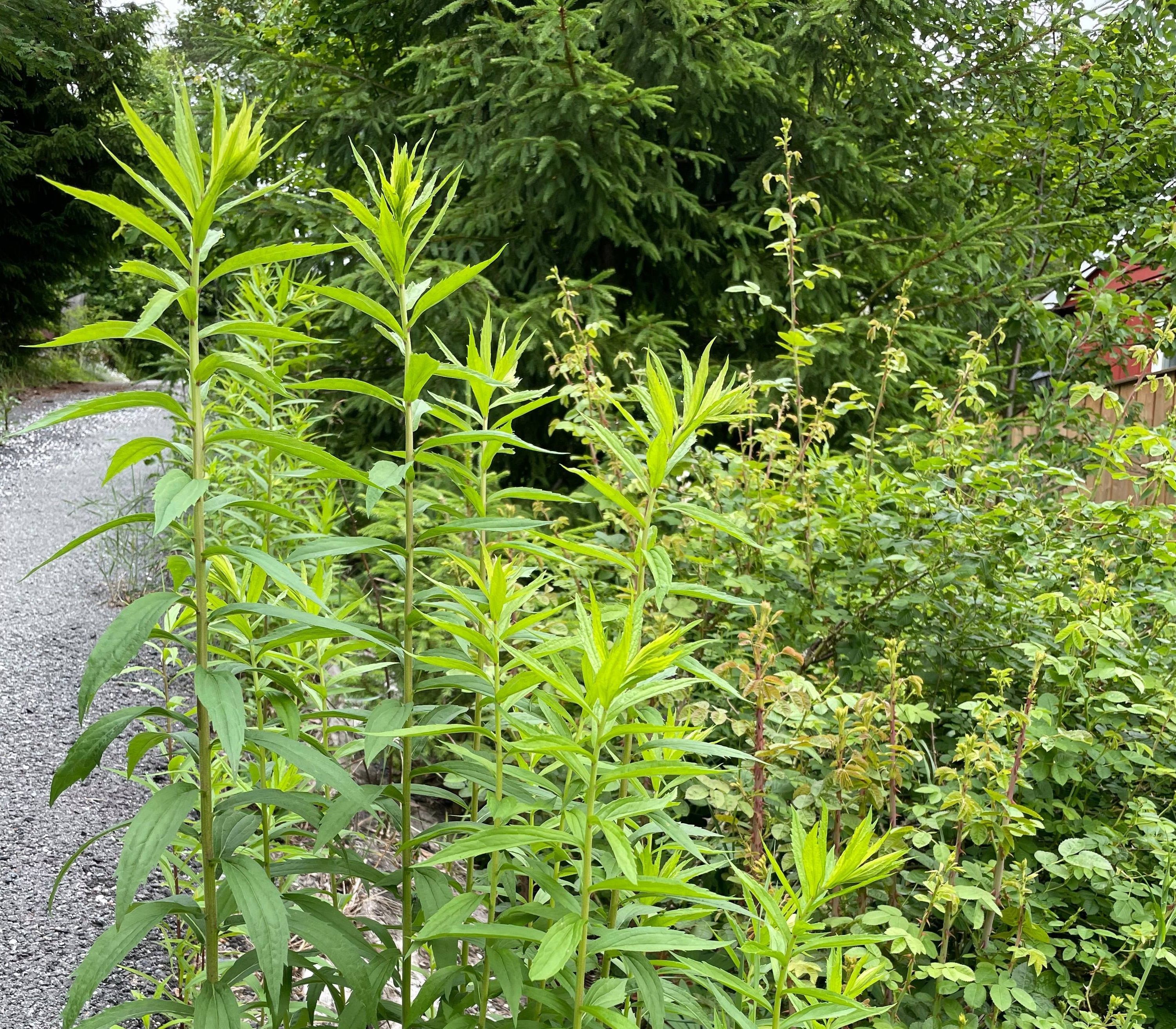 De lange stenglene på gullrisen har ikke blomstret enda, og kan enkelt lukes. Foto: Ingeborg B. Engh