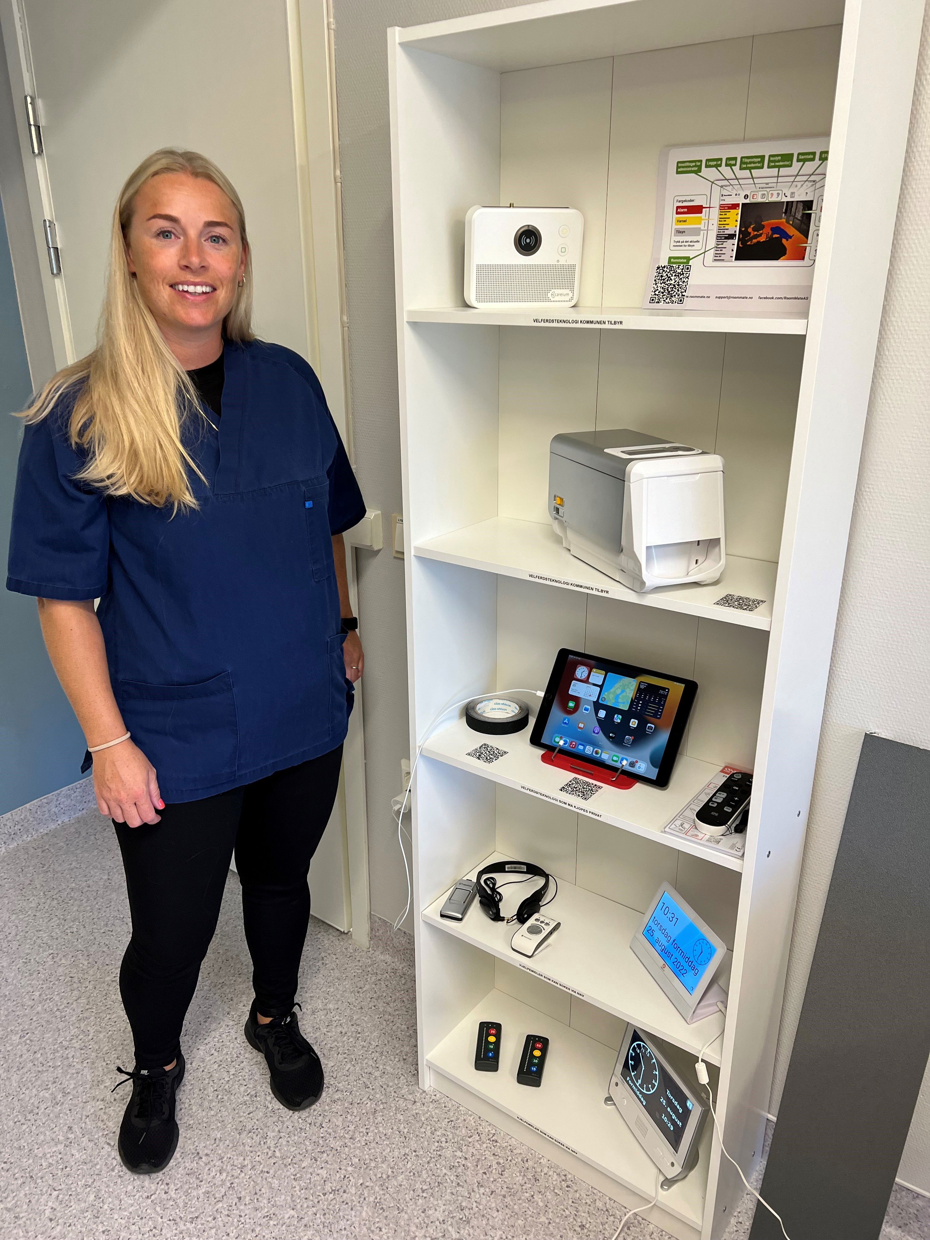 -Velkommen til visningsrommet vårt, sier ergoterapeutene Nina Mejlgaard og Anne Fond i Rælingen kommune. Kommunen arrangerer åpen dag for andre gang denne sommeren. Interessen fra pårørende og brukere er stor. Dermed blir det flere slike åpne dager på visningsrommet for velferdsteknologi på Fjerdingby helsetun.